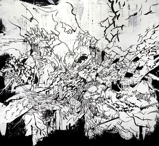 Ink and acrylic on canvas